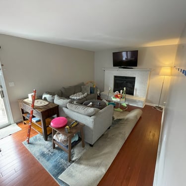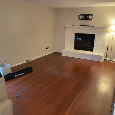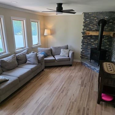 Removed existing wood-burning fireplace and replaced with new, direct vent, matte black, natural gas stove
