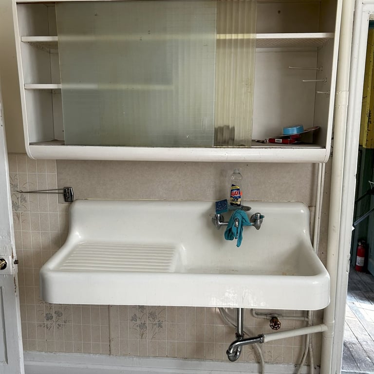 Brand new tile surround for bathtub in hallway bathroom; new vanity; new tile floors; spacious linen closet